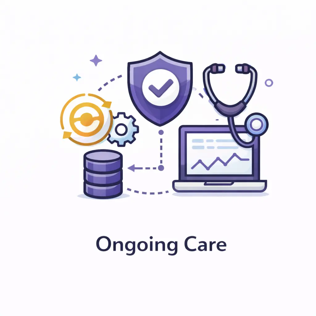 Ongoing care updates, backups, monitoring, and fast diagnosis when something goes wrong.
